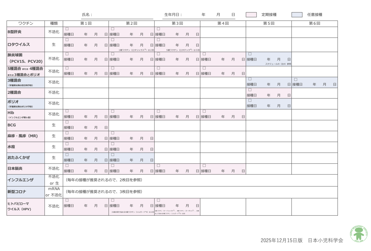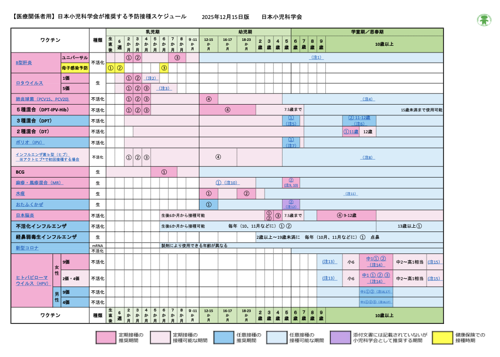 ●日本小児科学会が推奨する予防接種スケジュール